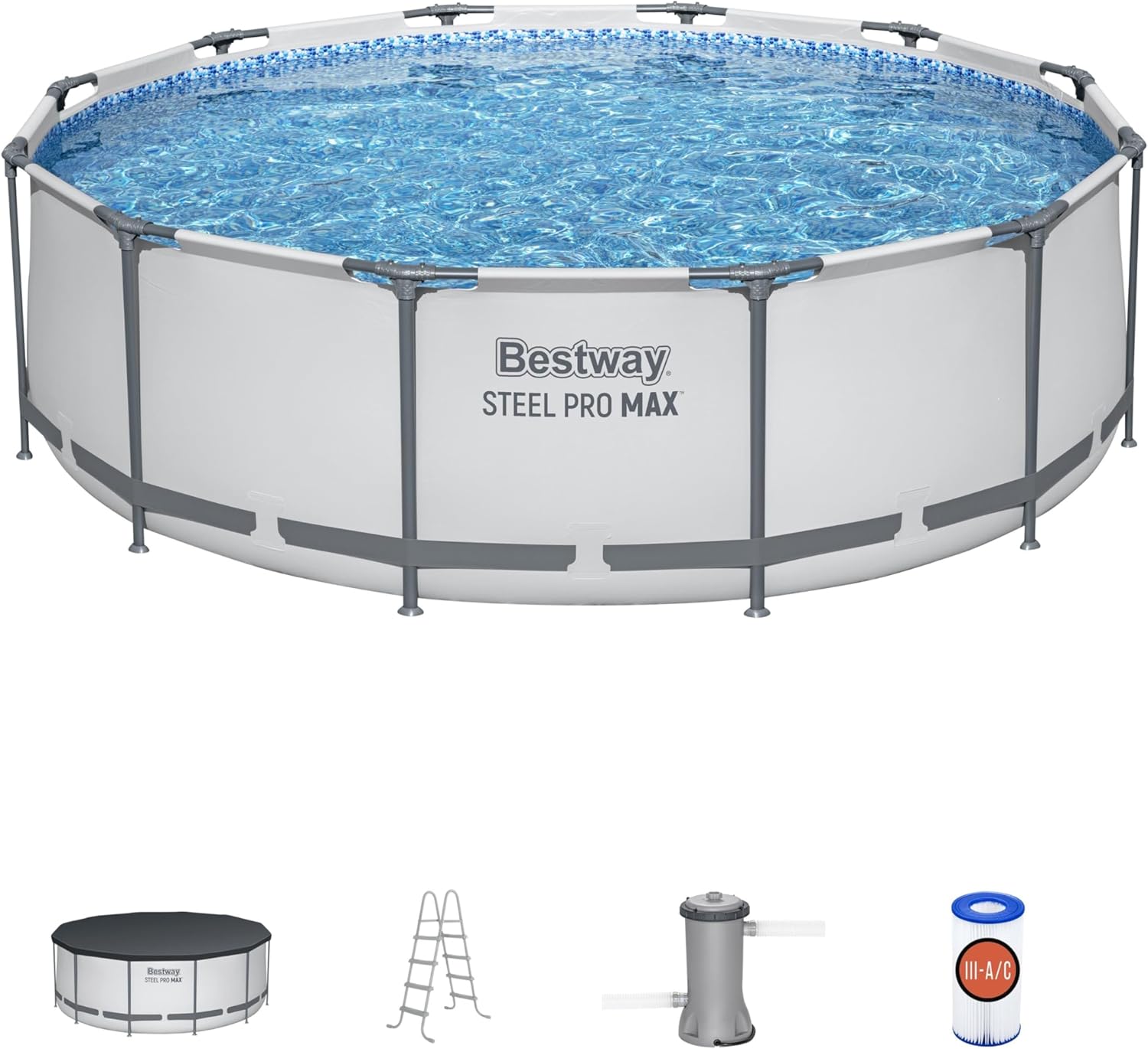 BESTWAY 56421 Alberca con Estructura Redonda 3.66x1.22cm con Bomba y Filtro Gris, Gris