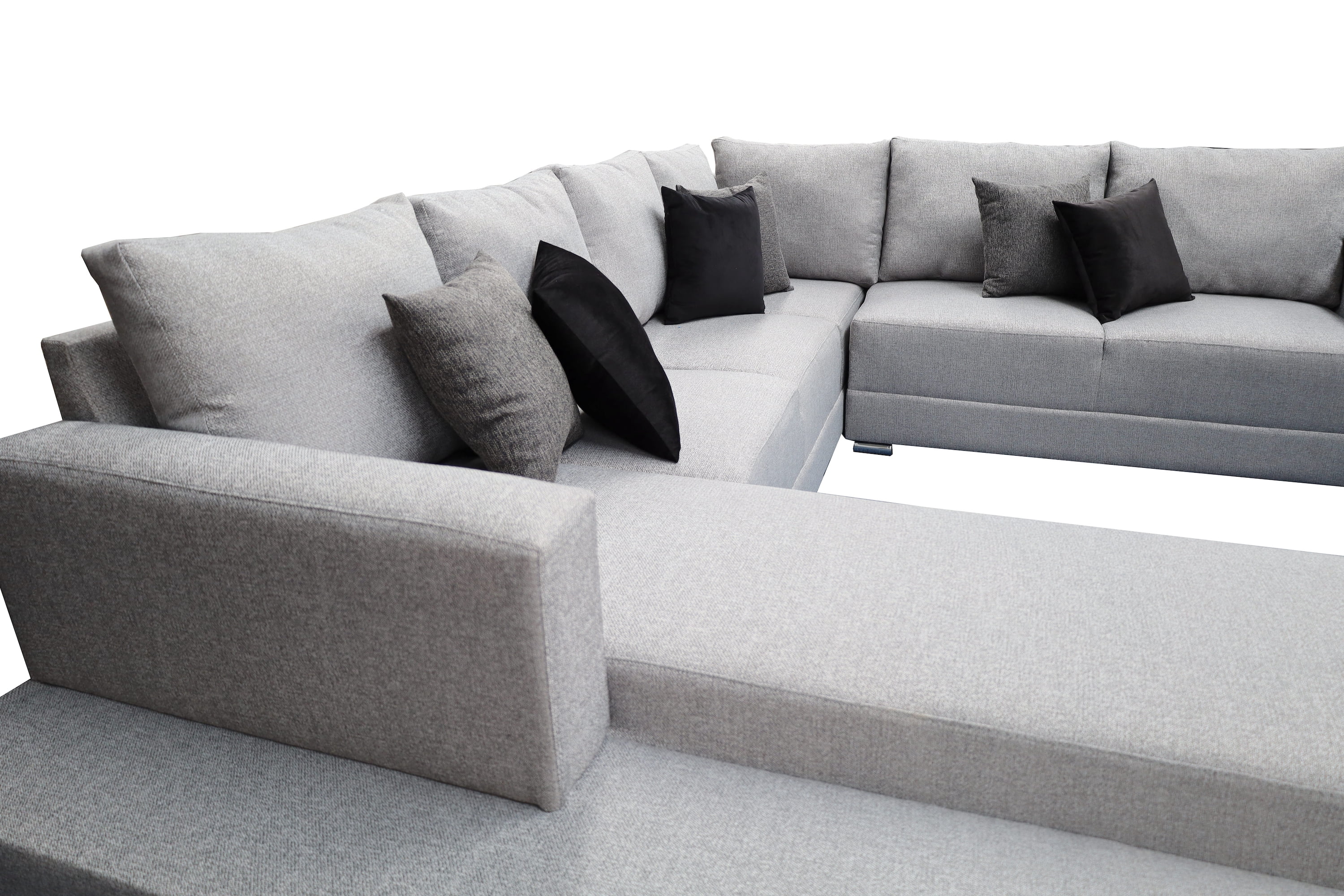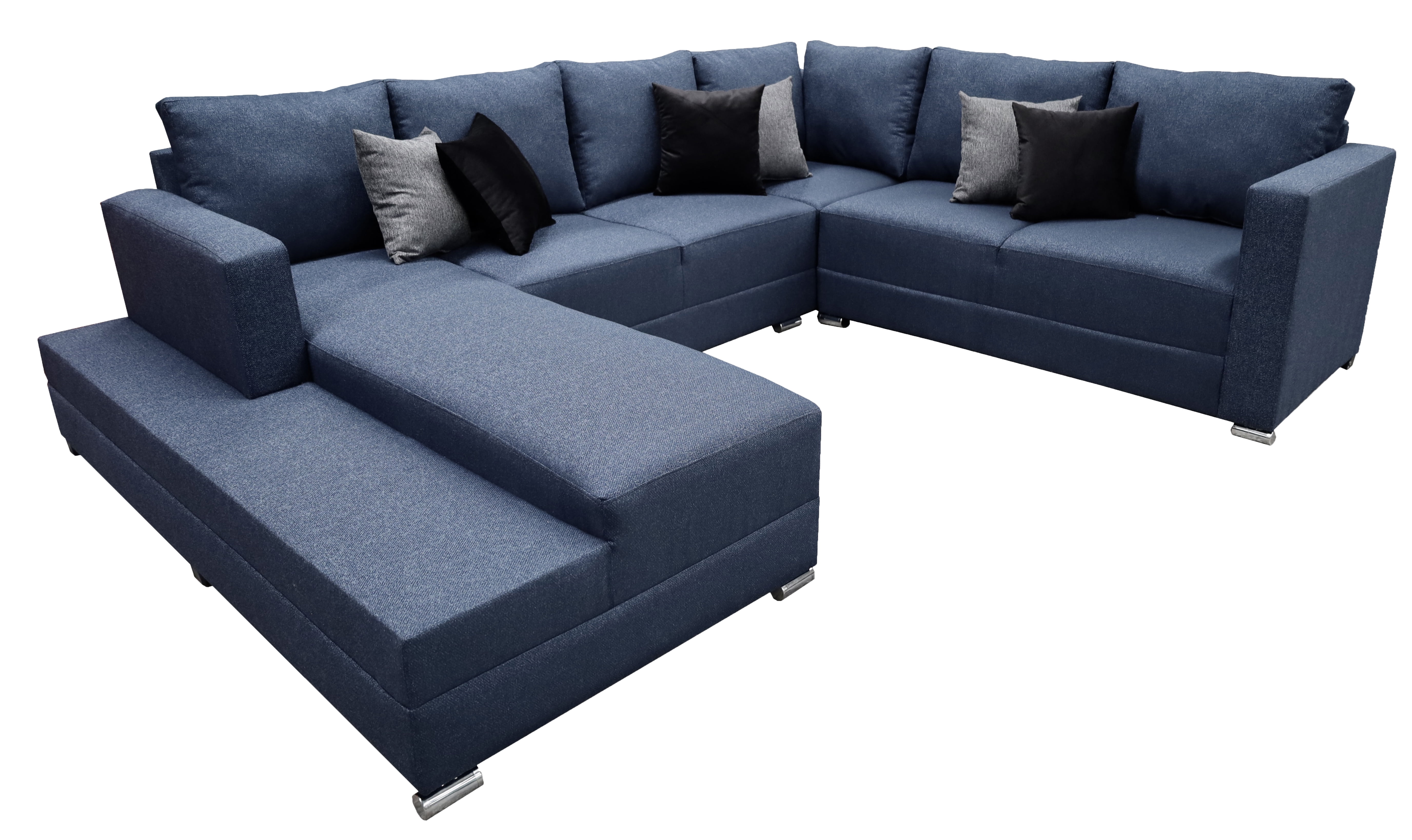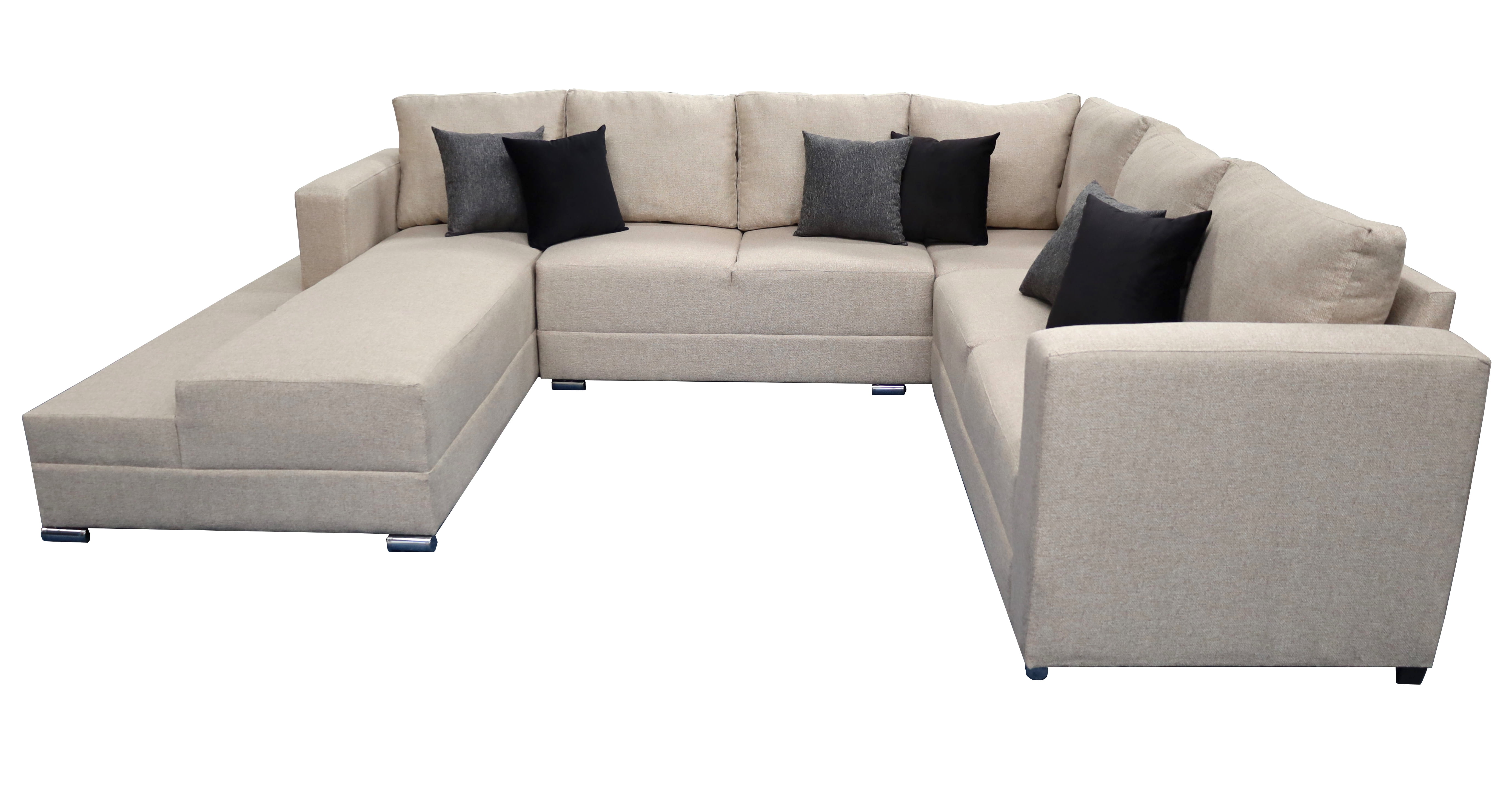 Hermosa sala esquinera en "U" modelo Corbel. Sin duda la mejor elección para tu total comodidad, no te quedes sin la tuya.4 salas en 1, conformada por 3 piezas las cuales les puedes dar el acomodo y utilidad que tu prefieras!Estructura elaborada con madera de pino estufada, totalmente resistente para una larga vida.Tapizada en fina tela lino en color gris oxford. Acojinamiento con hule espuma de alta densidad y delcron greña en cojines, para mayor confort y durabilidad. Todos los cojines incluidos.Medidas: Largo derecho 255 cm, largo frente 315 cm, largo izquierdo 200 cm, Profundidad 90 cm, Alto 85 cm