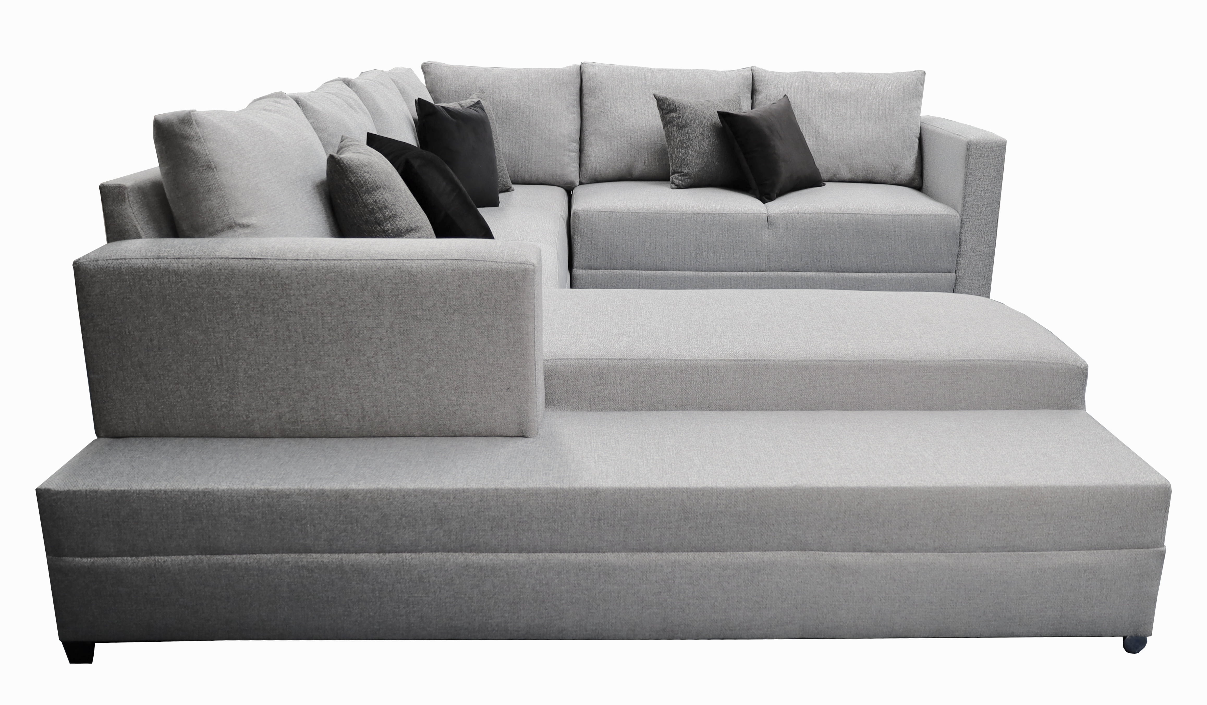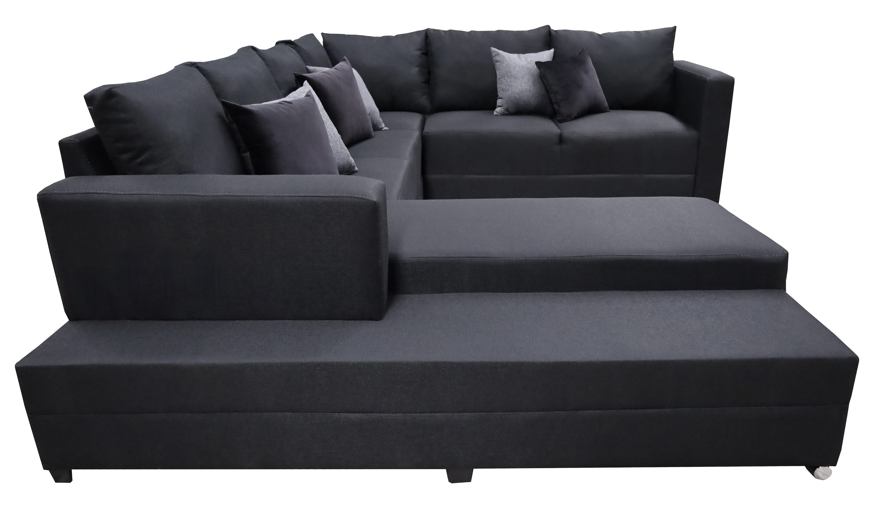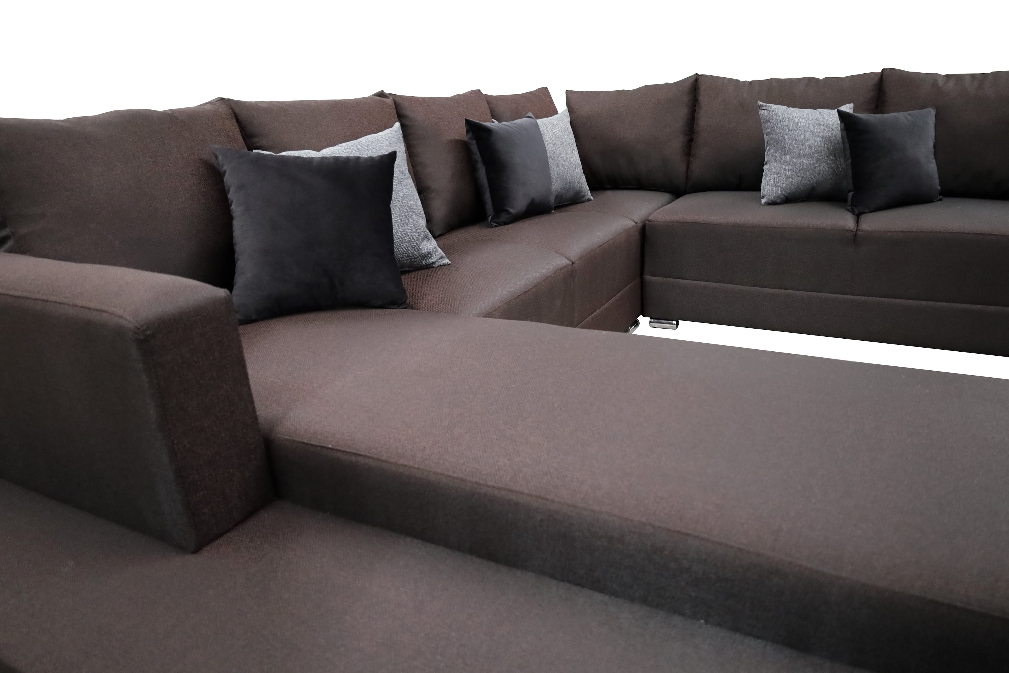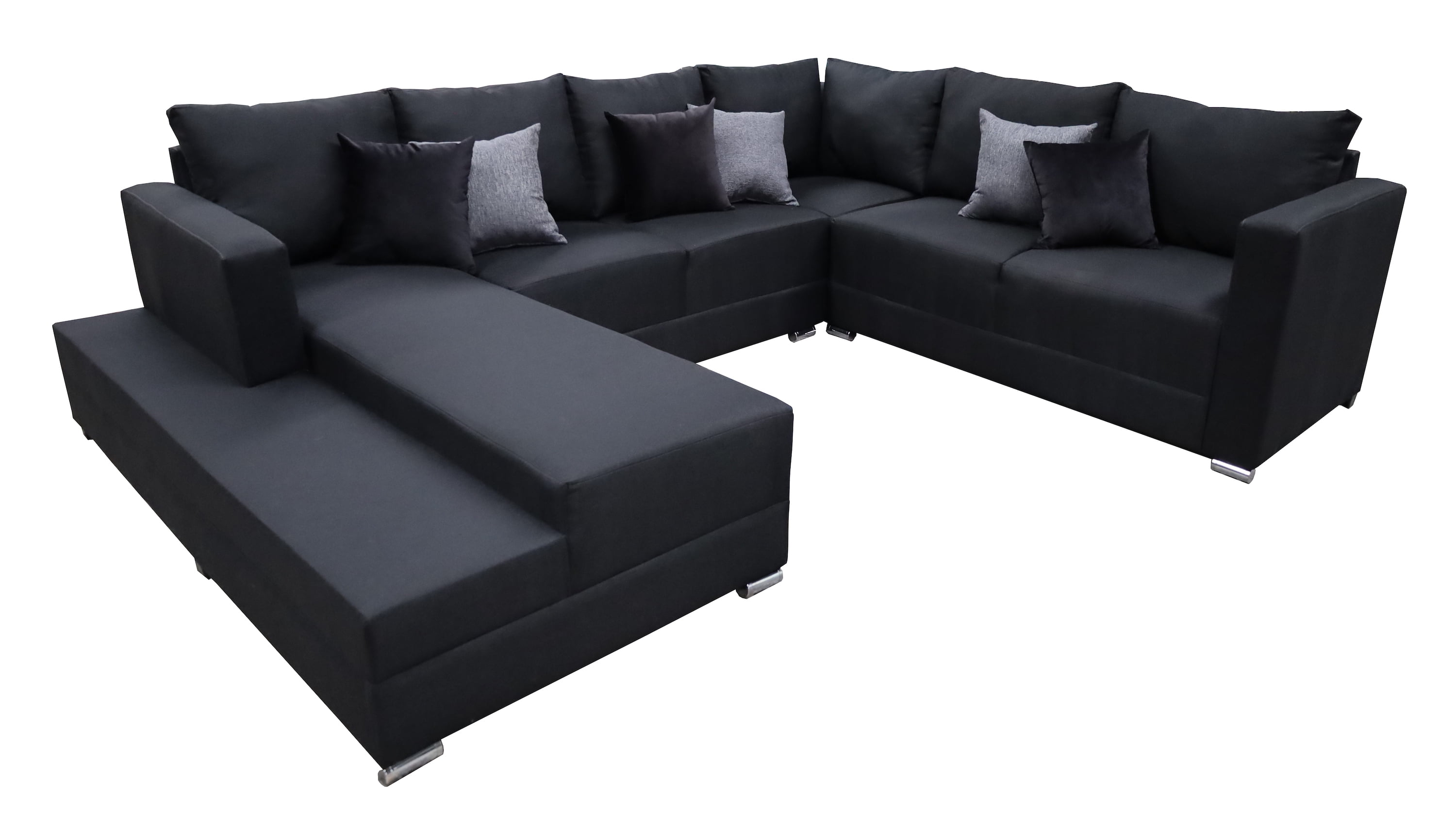 Hermosa sala esquinera en "U" modelo Corbel. Sin duda la mejor elección para tu total comodidad, no te quedes sin la tuya.4 salas en 1, conformada por 3 piezas las cuales les puedes dar el acomodo y utilidad que tu prefieras!Estructura elaborada con madera de pino estufada, totalmente resistente para una larga vida.Tapizada en fina tela lino en color gris oxford. Acojinamiento con hule espuma de alta densidad y delcron greña en cojines, para mayor confort y durabilidad. Todos los cojines incluidos.Medidas: Largo derecho 255 cm, largo frente 315 cm, largo izquierdo 200 cm, Profundidad 90 cm, Alto 85 cm